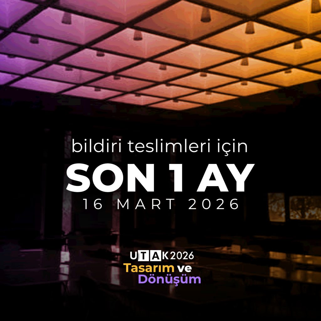 UTAK 2026 “Tasarım ve Dönüşüm” Bildiri sunumları, posterler, kısa tartışmalar ve çalıştaylar için son başvuru tarihi 16 Mart 2026. Çağrı metnimiz ve başvuru detayları için http://utak.id.metu.edu.tr/ sitesini ziyaret edebilir, sorularınız için bizimle utak@metu.edu.tr adresinden iletişime geçebilirsiniz.